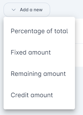 Select the Add a new drop-down menu to create the invoice content. Select the required amount. It is important to note that selecting Remaining Amount will update the invoice with the total outstanding amount. Choosing a specific amount will add it to the invoice detail line.