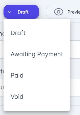 Once you are satisfied and have saved the changes, you can then select Send to send the invoice to the customer via email. Change the status to Awaiting Payment from the drop down menu and check the Sent box.