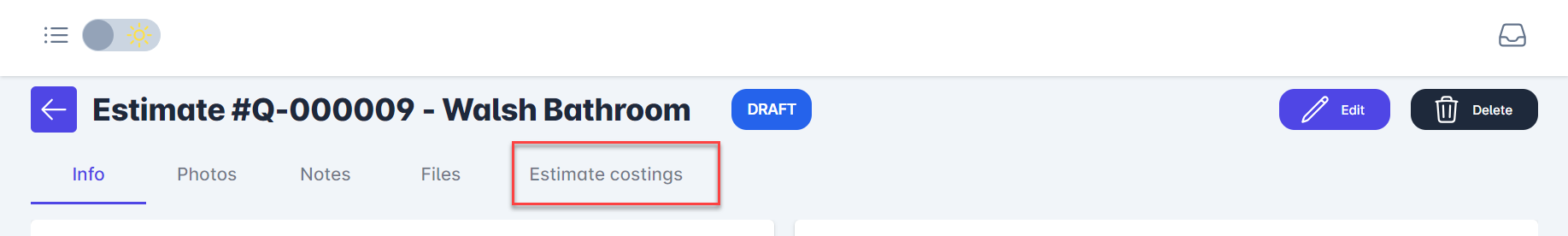 - Go to Estimates (or select + New Estimate on the dashboard)